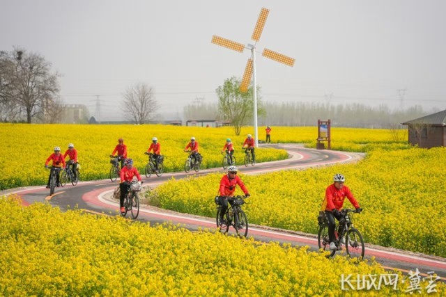 騎行愛好者在金沙河紅薯嶺的油菜花田里騎行。通訊員 楊喜旺 供圖