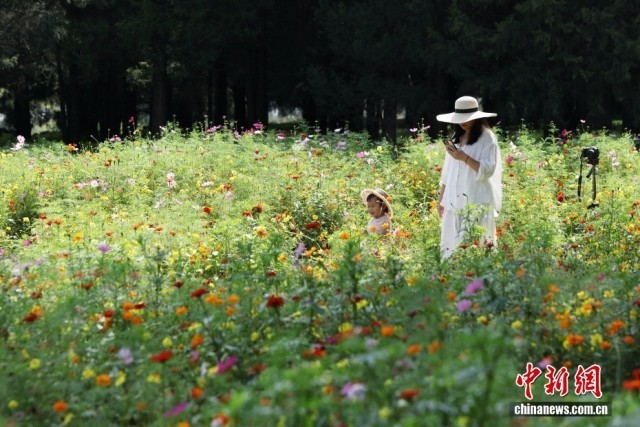 9月29日,北京,2025年圓明園金秋游開幕。金秋游期間,美麗的秋景與豐富多彩的文化活動,將讓游客在秋游的同時感受圓明園深厚的文化底蘊。圖為游客漫步花海。
