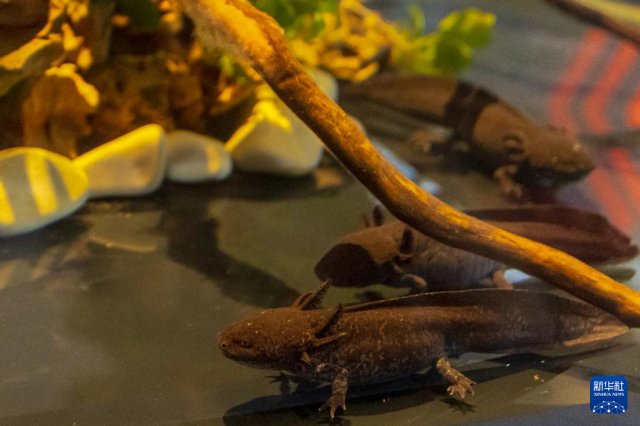 10月8日,在巴西里約熱內盧生物公園,鈍口螈在新展區的水族箱中活動。