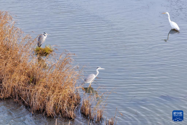 10月14日在黑龍江省同江市三江口國家濕地公園拍攝蒼鷺和白鷺。
