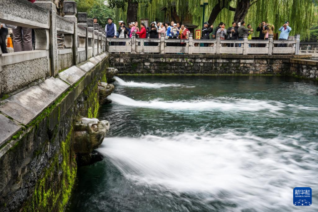 受近期降雨影響,山東省濟南市群泉奔涌,吸引游客前來觀賞。