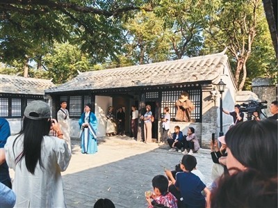 馬致遠故居上演環繞式文旅劇《曲狀元》,吸引了眾多游客駐足觀看。