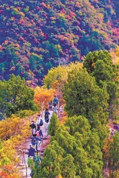 活力賞“紅”線:這是宜于年輕人觀賞紅葉的線路。從東門入園向南,沿著向西而去的盤山道上山,過多景亭、十八盤、閬風亭、森玉笏、朝陽洞、平臺,最后到達山頂,置身于山巔,滿山紅葉盡收眼底。