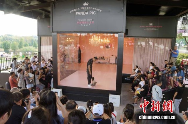 10月12日,金華市婺城區長山鄉的熊貓豬豬兩頭烏國際牧場吸引游客圍觀。任海霞 攝
