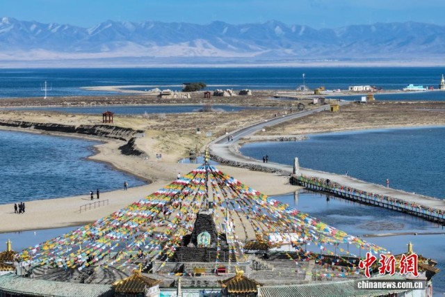 10月22日,航拍青海省海南藏族自治州共和縣青海湖秋日景色。(無人機照片)