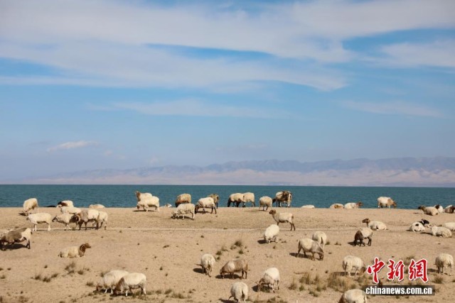 10月22日,青海省海南藏族自治州共和縣青海湖畔,羊群悠閑覓食。深秋十月,青海湖畔草地泛起金黃,羊群在草地上悠然自在。碧藍的湖面上,水鳥翩躚,與游客親密互動,構成一幅人與自然和諧共生的柔美畫卷。