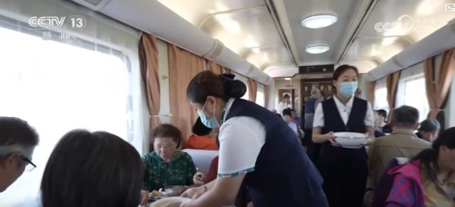 為了保障老年旅客的出行安全,這趟列車進行了適老化服務提升,安裝了防滑軟墊和硅膠扶手,并配備了老花鏡、放大鏡、常用藥品等物品,還開辟車站專用通道,方便銀發旅客上下車。在飲食方面,推出了適合銀發游客的低糖、低鹽、低脂的特色營養套餐。