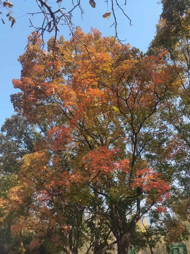 在一片秋日炫彩中,雜種鵝掌楸以其獨特的形態,為這片絢麗秋色增添一抹靈動的注腳。位于樹木園的雜種鵝掌楸,葉片形似鵝掌又似馬褂,讓人不禁感嘆大自然才是創意的締造者。鵝掌楸屬植物是古老的孑遺物種,被譽為植物界的“活化石”。雜種鵝掌楸是鵝掌楸和北美鵝掌楸雜交所選育的品種,它樹形高大挺拔,給人以幽靜、祥和之感。在這片清幽的林間,仿佛無聲地傳遞著季節的意趣,讓人感受到大自然的鬼斧神工。