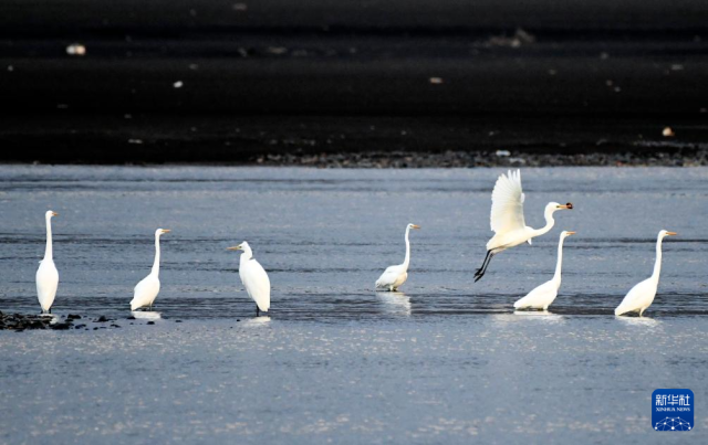 近日,一群南遷的白鷺飛臨位于黑龍江省牡丹江市的牡丹江畔,休憩覓食,成為深秋里的一道美麗風景。