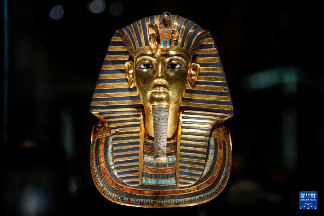 這是11月4日在埃及吉薩的大埃及博物館法老圖坦卡蒙展館拍攝的法老的黃金面具。