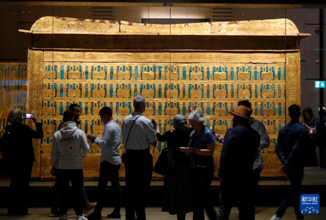 11月4日,在埃及吉薩的大埃及博物館,游客在法老圖坦卡蒙展館參觀神龕。